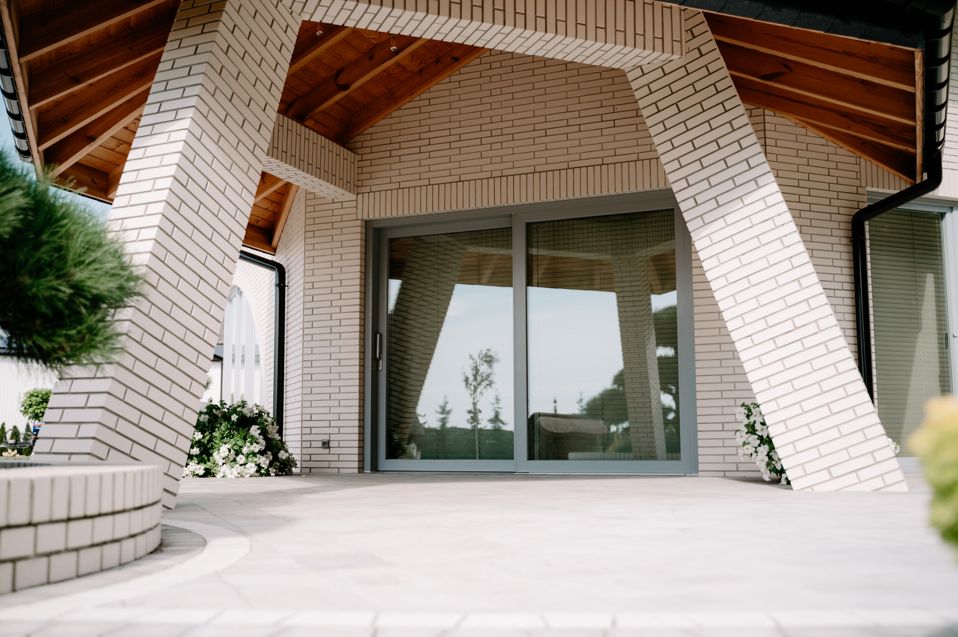 Dom jednorodzinny, stolarka aluminiowa YAWAl TM77 HI + DP150 + TM74, kolor strukturalny